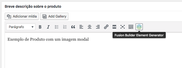 1 – Posicione o cursor no local que você precisa inserir o link para chamar a imagem modal e selecione o elemento Fusion
