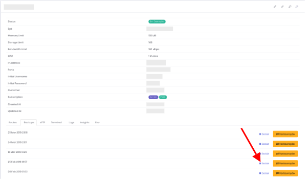 Aguarde o processo, que demora aproximadamente 5 minutos, e você restaurará sua aplicação para o mesmo estado de quando gravou o backup.