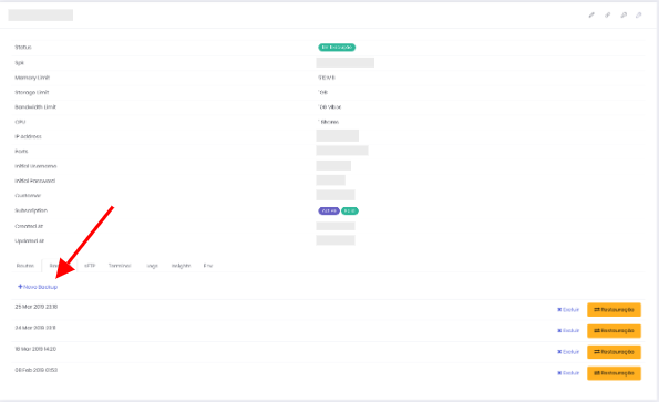 3) Pressione o botão “+ Novo Backup”